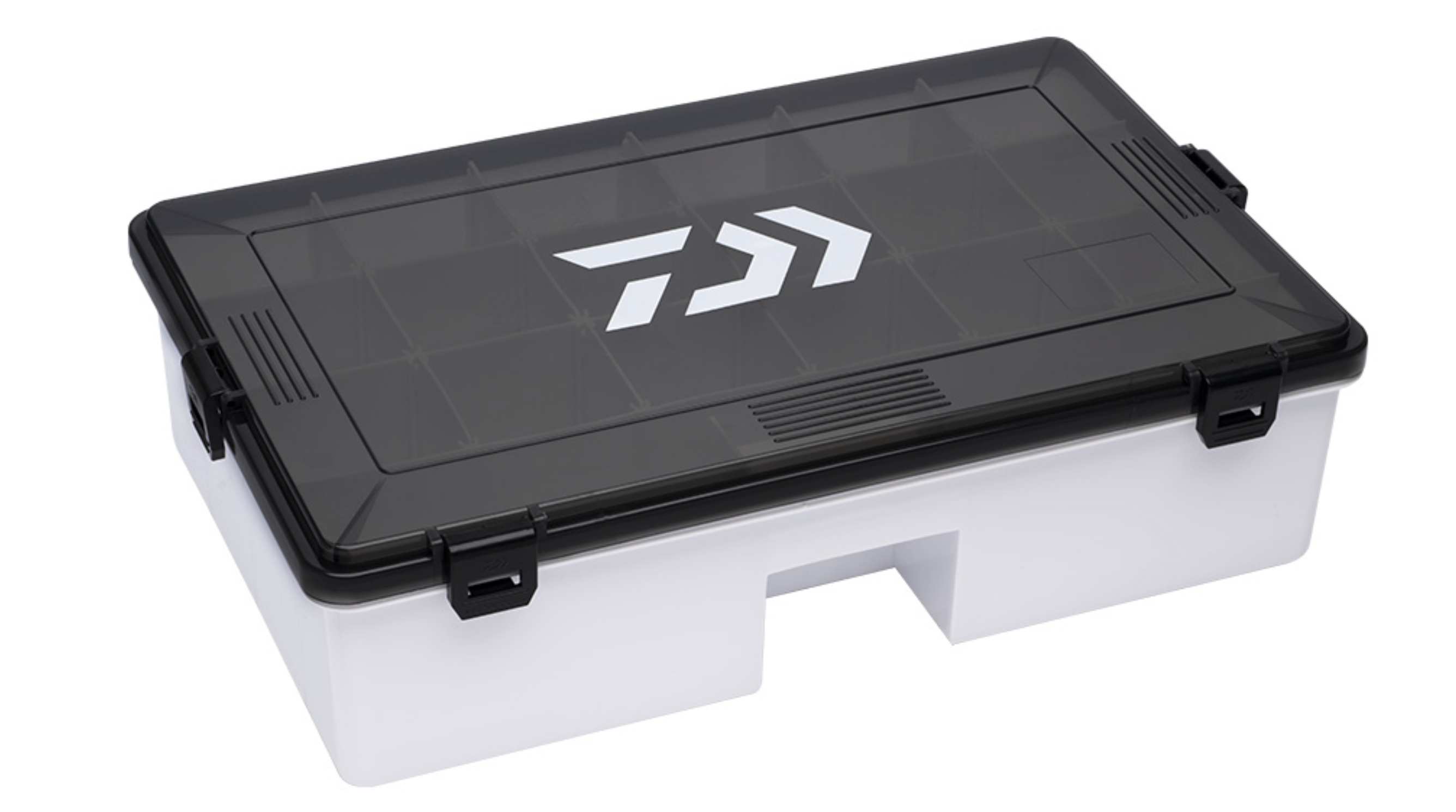 Alle Daiwa D-BOX Boxen verfügen über ein Vier-Seiten-Verriegelungssystem, das eine sichere Verriegelung und Wasserdichtigkeit gewährleistet.