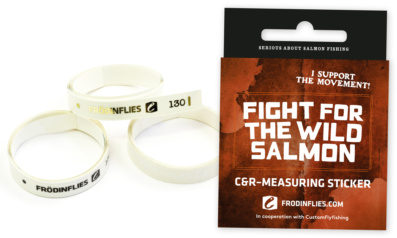 Frödin Flies Messaufkleber erleichtert das Messen des Fisches und beschleunigt das Freilassen. Der Messaufkleber wird an der Angelrute angebracht, sodass der Fisch leicht gegen die Rute im Wasser gemessen und auf seine Wanderung zu den Laichgebieten entlassen werden kann.