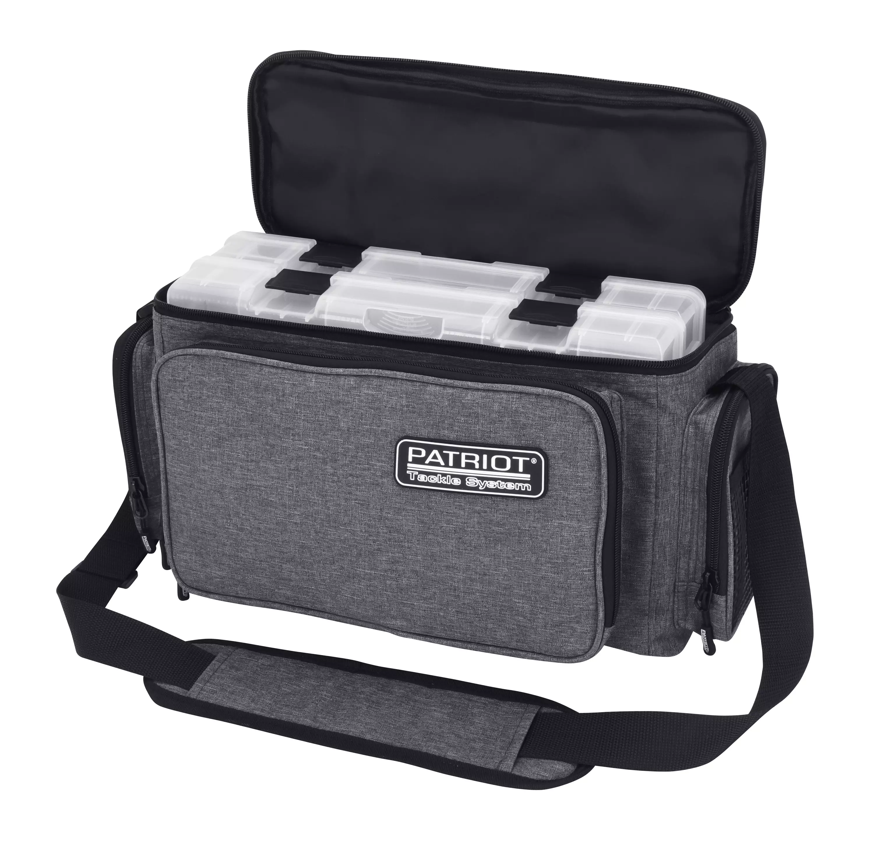 Patriot Tackle System Small – eine Köderbox-Tasche, die für die Bedürfnisse von Anglern entwickelt wurde. Diese Tasche bietet Praktikabilität und Haltbarkeit und enthält zwei hochwertige Köderboxen.