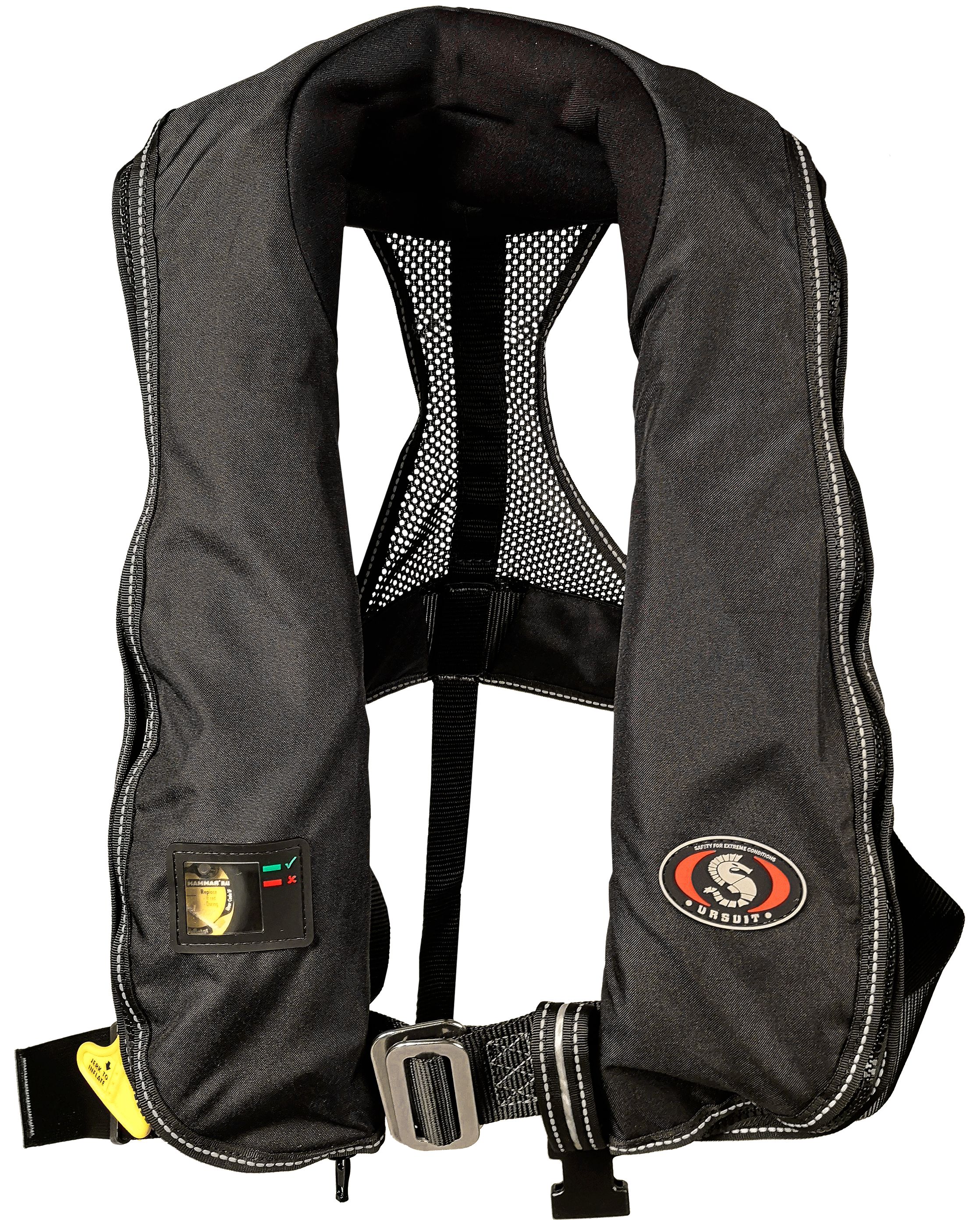 Ursuit DSH Hydro 275N - eine völlig neue automatische Rettungsweste, die leicht und angenehm zu tragen ist, mit einem tatsächlichen Auftrieb von 320N. Die Weste verfügt über einen YKK QuickBurst™-Reißverschluss mit geschlossenem Design (speziell für Rettungswesten entwickelt). Der Tragekomfort wird durch den Neoprenkragen der Weste erhöht. Auf der Rückseite befindet sich ein Netzdreieck, das verhindert, dass Luft unter das Kleidungsstück auf dem Rücken gelangt. Die Weste ist mit einem verstellbaren Taillengurt, einem Schrittgurt und einem Mundstück ausgestattet. Ein reflektierender Stich verläuft über die gesamte Vorderseite der Weste. Der Auslöser ist ein Hammar MA1 (hydrostatisch) und die Patrone wiegt 60g. Das Wartungsintervall des Auslösers beträgt 5 Jahre. Die Weste verfügt über ein Informationsfenster, das anzeigt, ob der Auslöser und die Patrone funktionsfähig sind. Die Metallbeschläge der Weste sind antimagnetisch und verfügen über einen D-Ring (ISO 12401) zur Befestigung einer Sicherheitsleine. Im Inneren der Weste befindet sich auch eine Pfeife. CE, ISO 12402 für Küsten- und Hochseeanwendungen.