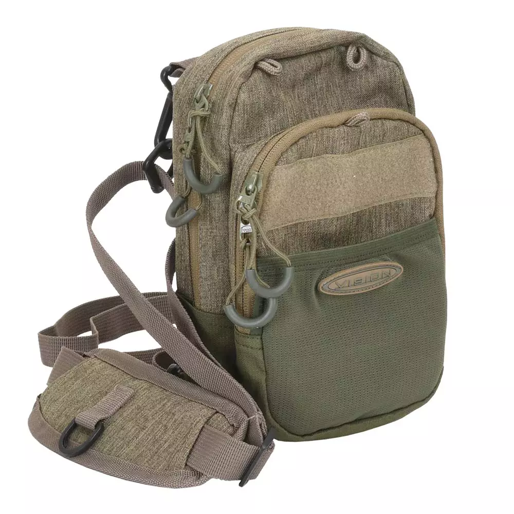 Vision Mini Bra² Nutria – eine minimalistische Brusttasche, die für Angler entworfen wurde, die eine kompakte und praktische Lösung schätzen. Die Tasche ist klein, aber geräumig genug für die Fliegen und das Zubehör eines Tages.