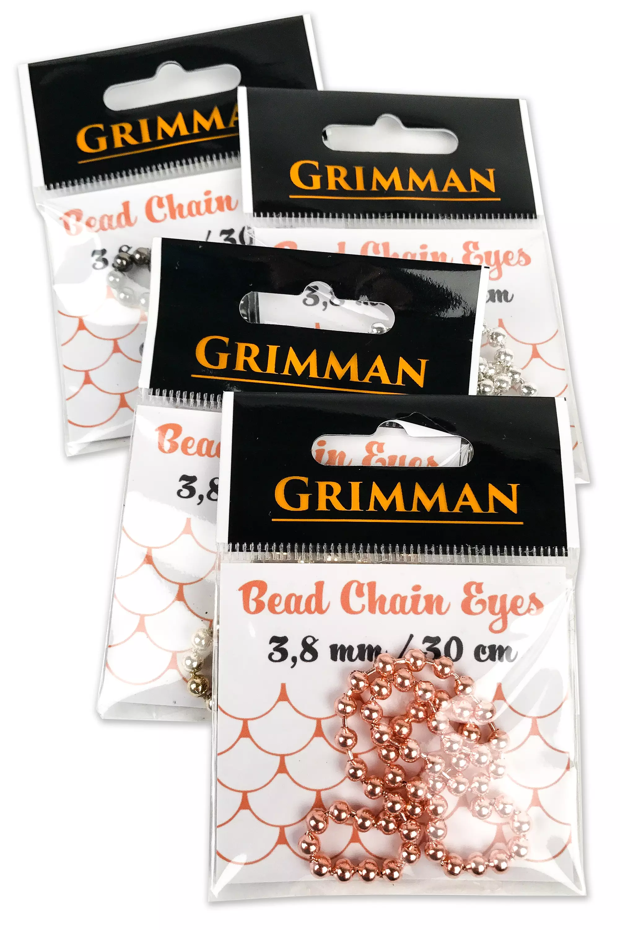 Grimman Bead Chain Eyes sind Grimman's Version der Kugelkette. Erhältlich sowohl in Metallfarben als auch in sehr leuchtenden, bemalten Fluorfarben. Von den drei verfügbaren Größen können Sie die für Ihren Verwendungszweck am besten geeignete auswählen. Die Packung enthält etwa 30 Zentimeter Kugelkette. Material: Messing.