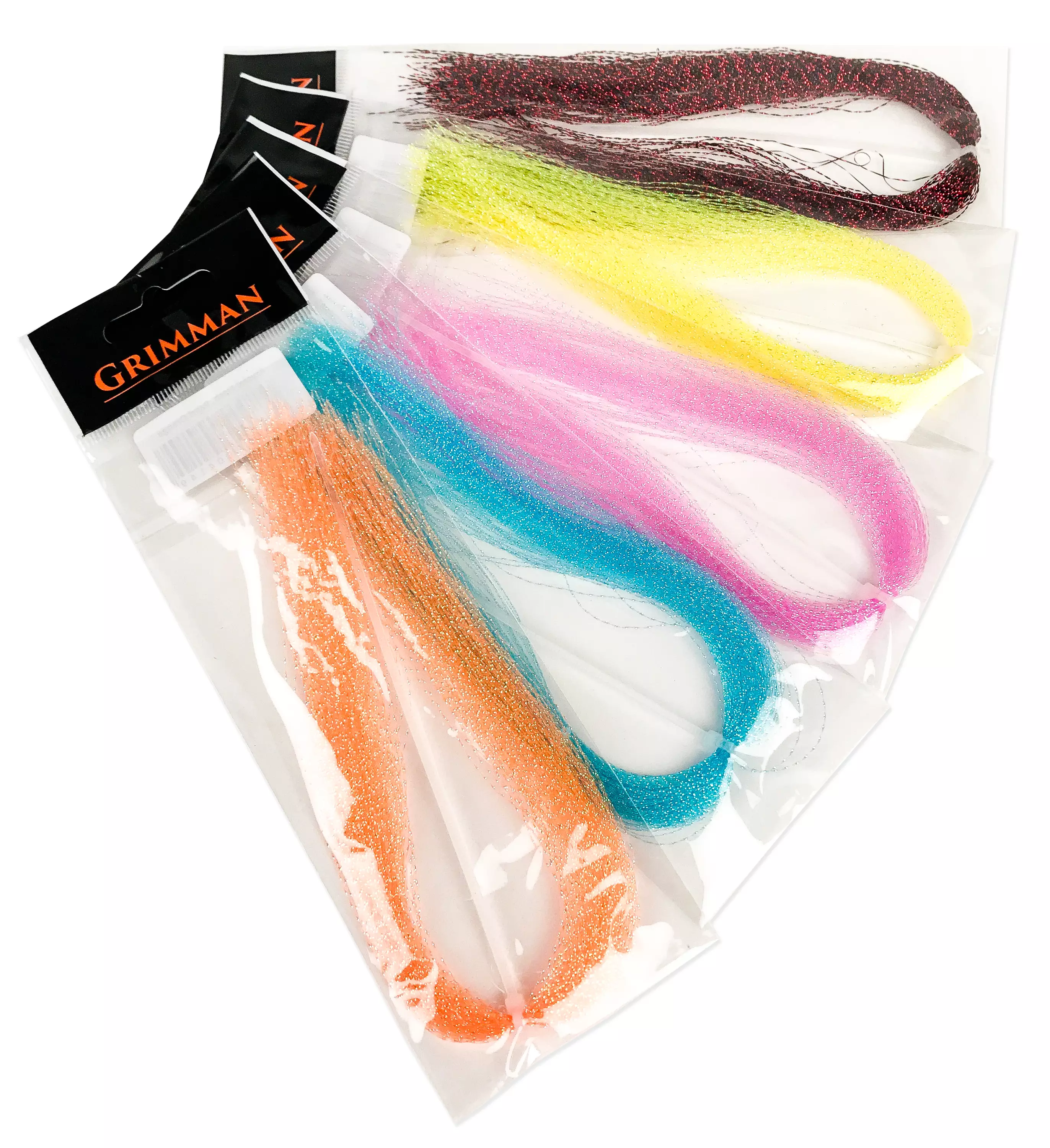 Grimman Krystal Flash wurde speziell für Fliegenbinder entwickelt, die ihren Fliegen Attraktivität und Lebendigkeit verleihen möchten. Die Glitzerfaser ist einfach zu handhaben und hält gut, was sie zu einer ausgezeichneten Wahl für eine Vielzahl von Fliegen macht.
