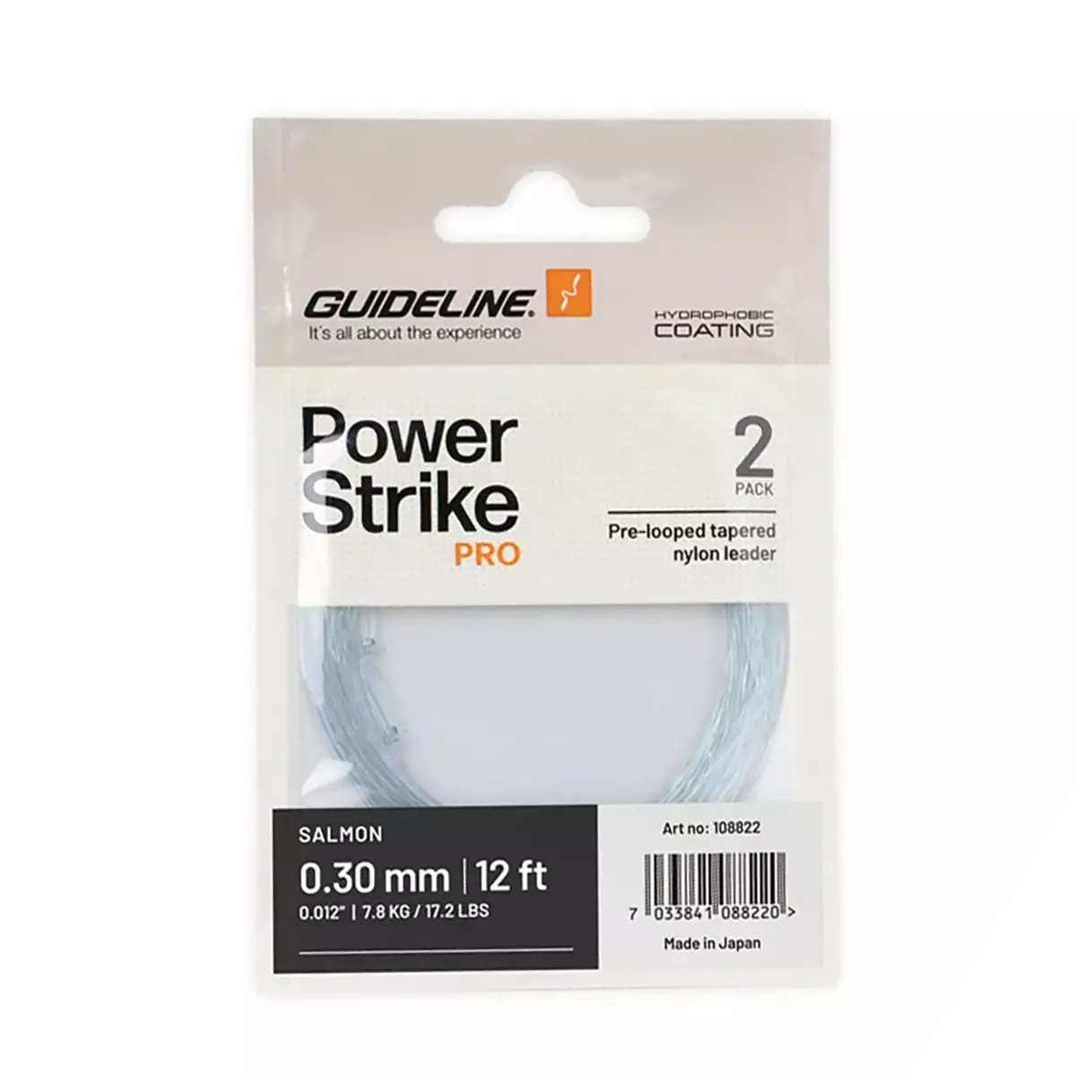 Guideline Power Strike PRO Salmon 12ft - moderne Nylon-Kegelvorfächer, 12 Fuß (3,66 m) für das Lachsangeln, 2 Stück im Set, geliefert in einem UV-geschützten Reißverschlussbeutel für sichere Aufbewahrung. Die Vorfächer haben vorgefertigte Schlaufen (pre-looped) für einfache Befestigung und eine dezente smoke grey-Färbung.