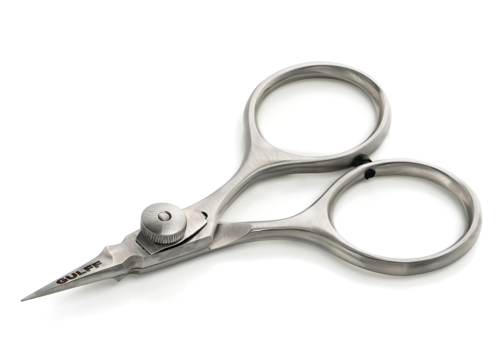 Gulff Hard Face Razor Arrow Schere sind hochwertige Scheren für präzises Arbeiten sowohl mit kleinen Fliegen als auch mit kleinen Details.