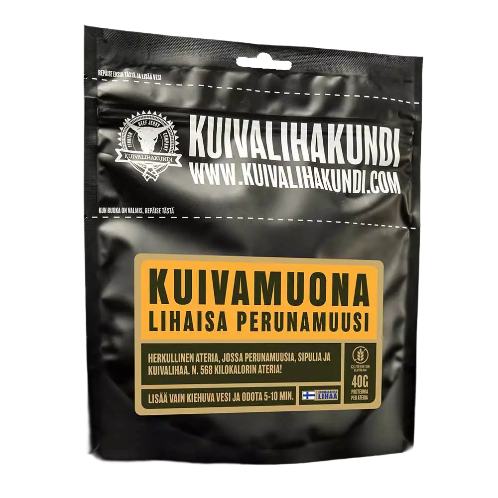 "Fleischiger Kartoffelbrei ist eine köstliche Mahlzeit mit ca. 568 Kilokalorien. Er besteht aus Trockenfleisch, Kartoffelpüree und einer guten Menge Butterpulver. Das Butterpulver verleiht dem Brei einen wirklich angenehmen cremigen Geschmack. Im fleischigen Kartoffelbrei sind etwa 40g Protein pro Mahlzeit enthalten, was eine verrückte Menge ist. Du musst nur Wasser hinzufügen und etwa 10 Minuten warten.."