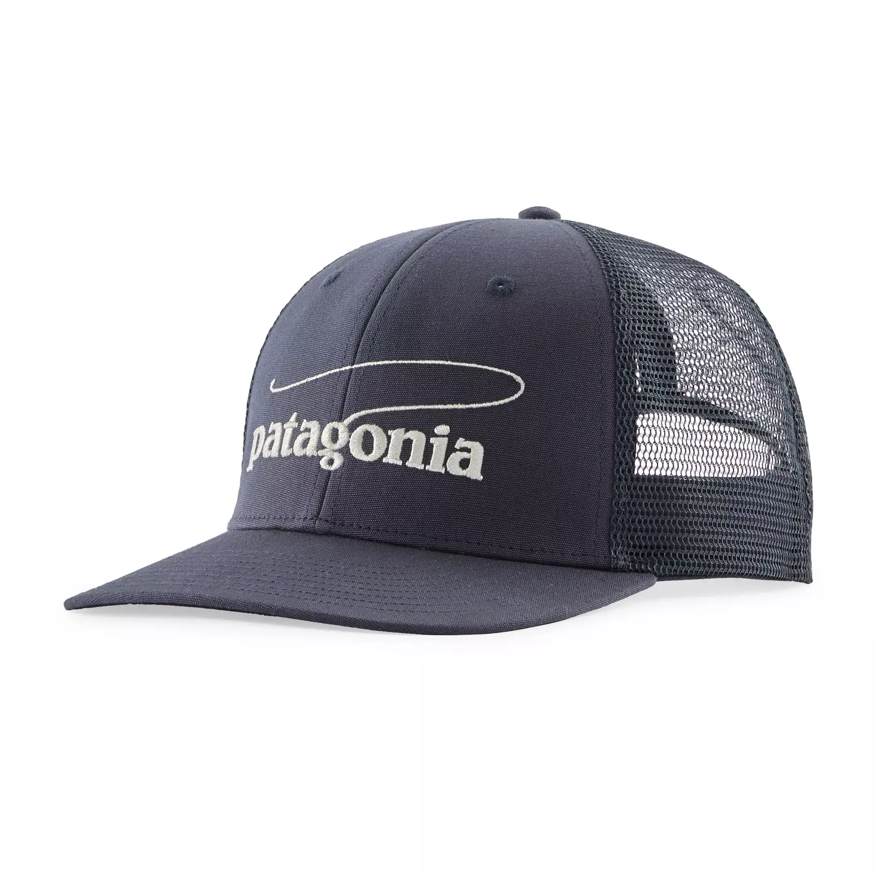 Patagonia Take a Stand Trucker Hat Casting Logo Smolder Blue – Diese klassische Mid-Crown-Trucker-Kappe wurde für Angler und Outdoor-Enthusiasten entworfen, die Wert auf Nachhaltigkeit und Umweltfreundlichkeit legen.