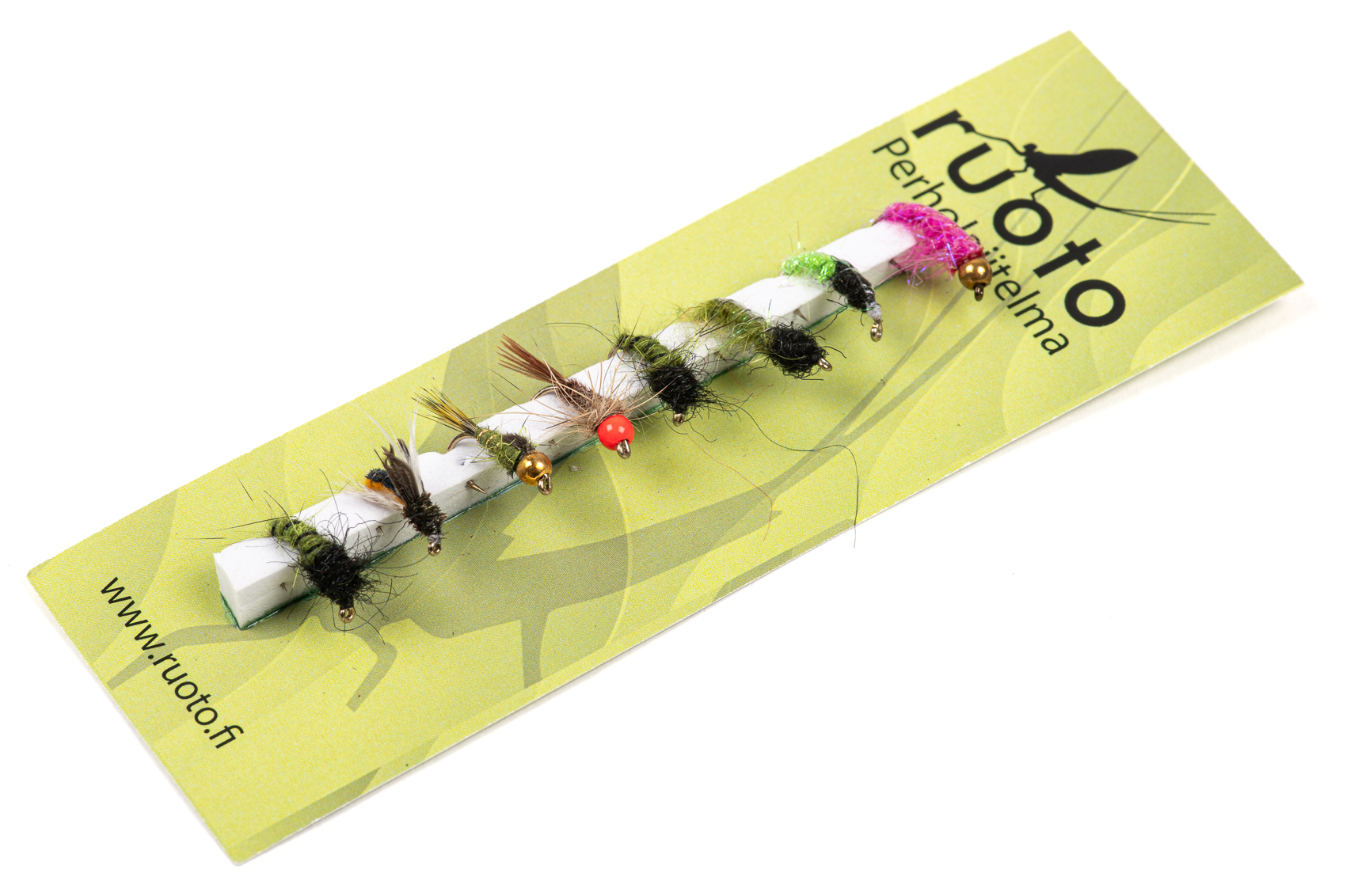 Ruoto Fliegenbox Larven und Puppen ist für das Fliegenfischen konzipiert, insbesondere für das Angeln auf Äschen und Forellen. Diese Box enthält acht verschiedene Fliegen, die Larven und Puppen imitieren. Solche Fliegen sind effektiv, weil sie die natürliche Nahrung der Fische im Wasser nachahmen. Die Box bietet eine vielseitige Auswahl an Fliegen, die für verschiedene Angelsituationen und -bedingungen geeignet sind.