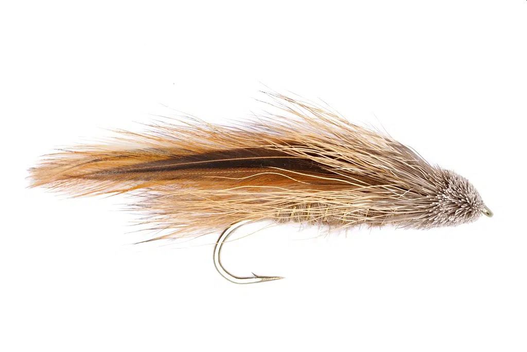 Sculpin Spuddler Streamer ist ein Nachbau eines Koppen, der für das Forellenfischen entwickelt wurde. Diese Fliege ist an einem hochwertigen Daiichi 2220 Haken gebunden. Koppen werden oft unterschätzt, sind aber sehr effektive Fliegen, die in Gebieten, in denen Forellen aktiv fressen, gut funktionieren. Der Muddler-Kopf des Spuddlers imitiert neben Koppen auch andere bräunliche Beutefische, wie Forellenbrut. Dies macht ihn zu einer vielseitigen Wahl für verschiedene Angelsituationen.