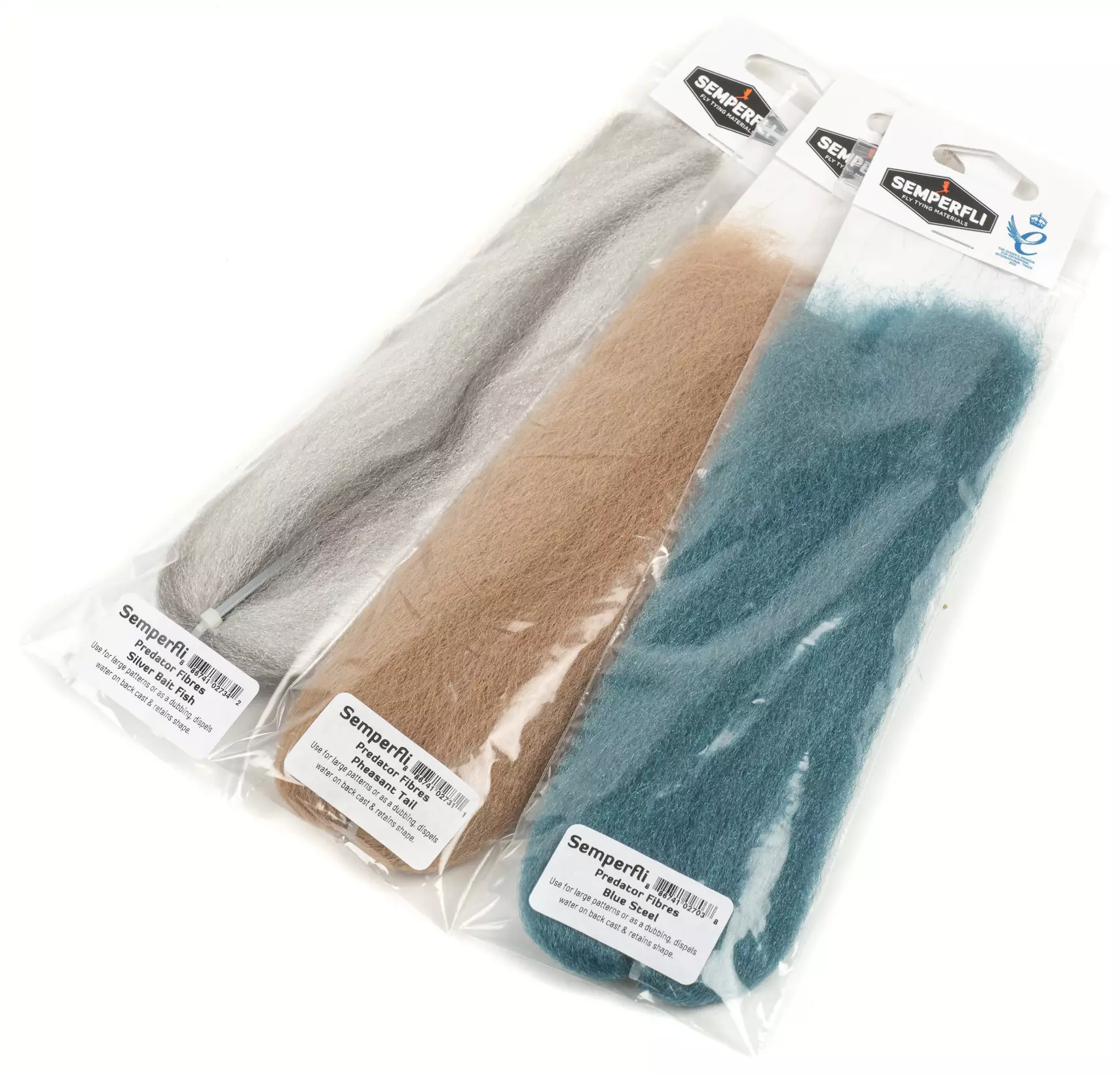 Semperfli Predator Fibres ist das perfekte Material zum Binden von Baitfish-, Hecht- und Streamer-Fliegen. Dank der hochwertigen synthetischen Fasern stößt Predator Fibres Wasser ab und behält seine Form auch im nassen Zustand.