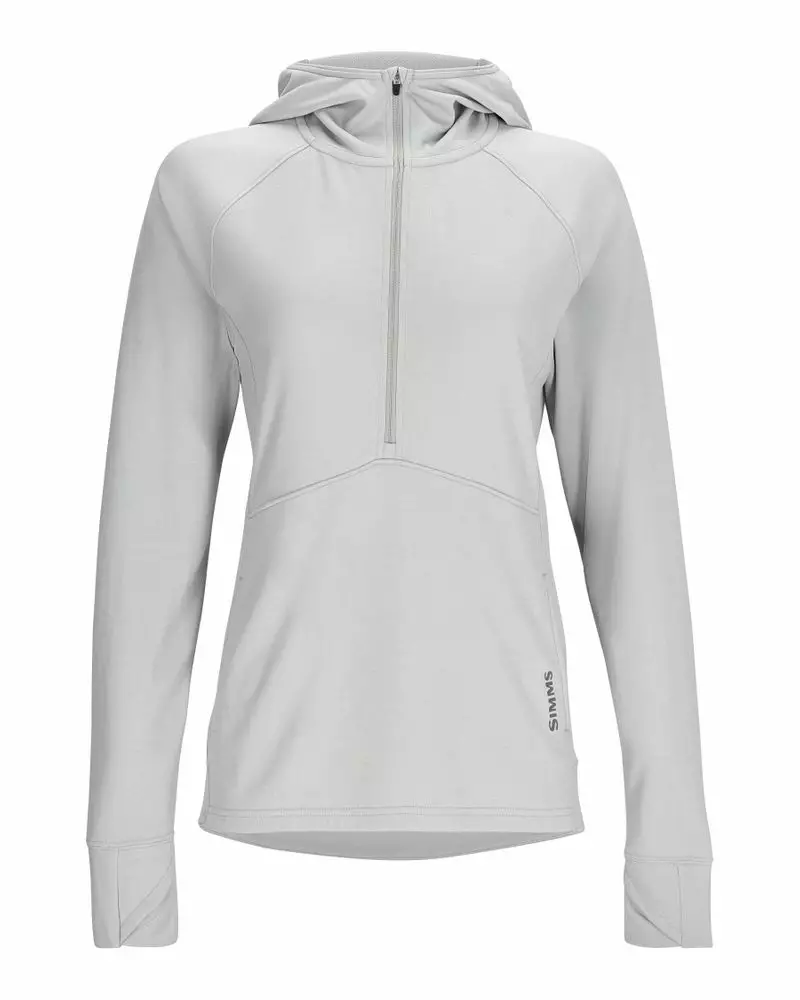 Simms Women's BugStopper Hoody Sterling Heather Damen-Hoodie mit Insektenschutz bietet Komfort und Schutz vor Insekten während eines ganzen Tages beim Angeln. Dieser stilvolle Hoodie mit halbem Reißverschluss besteht aus weichem und elastischem Material, das Feuchtigkeit ableitet und schnell trocknet.