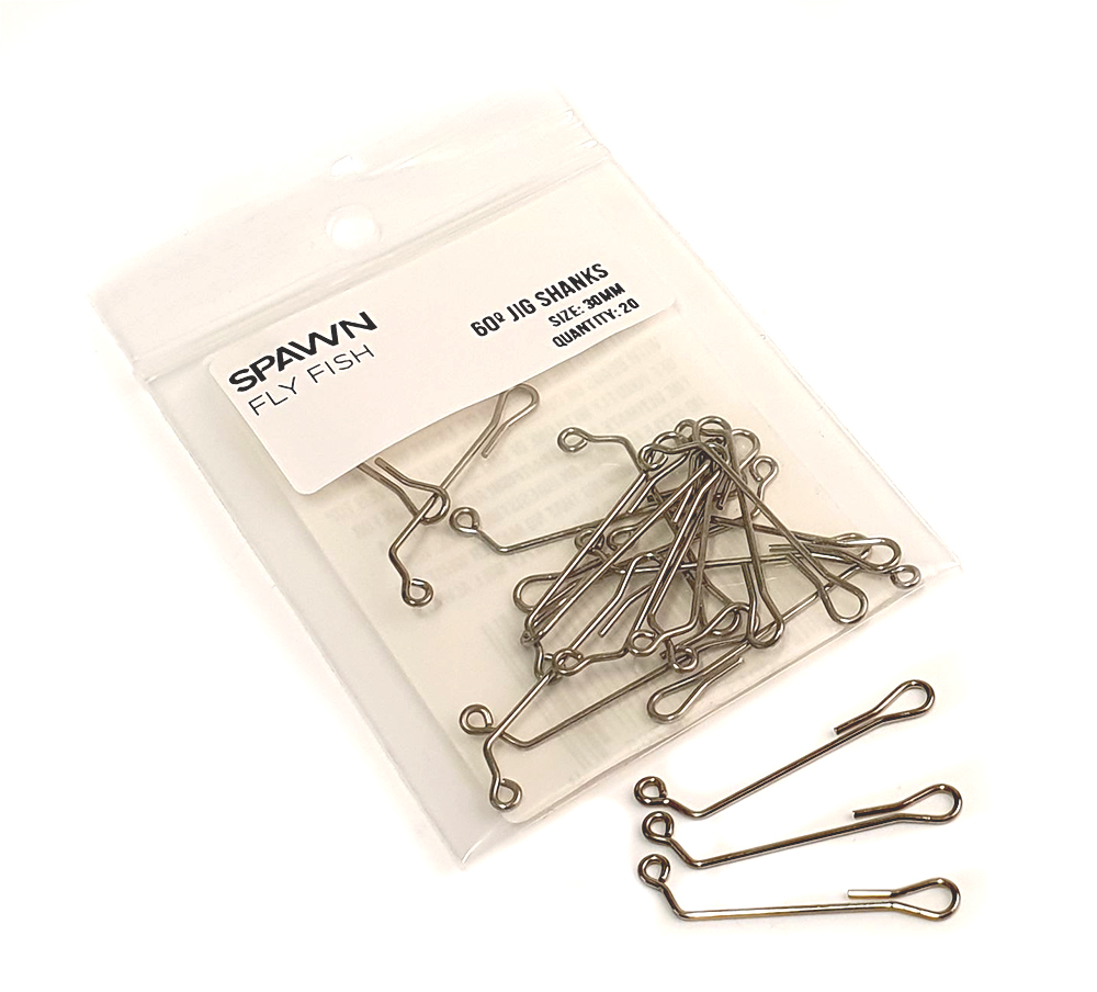 Spawn 60 Degree Jig Shanks sind auf 60 Grad gebogene Schaftdrähte, die mit verschiedenen geschlitzten Kugelköpfen und Gewichtsaugen verwendet werden können. Die Jig Shanks können mit anderen Schaftdrähten kombiniert werden, um längere Fliegen zu binden, oder direkt in die hintere Schlaufe des gewünschten Hakens eingefädelt werden.