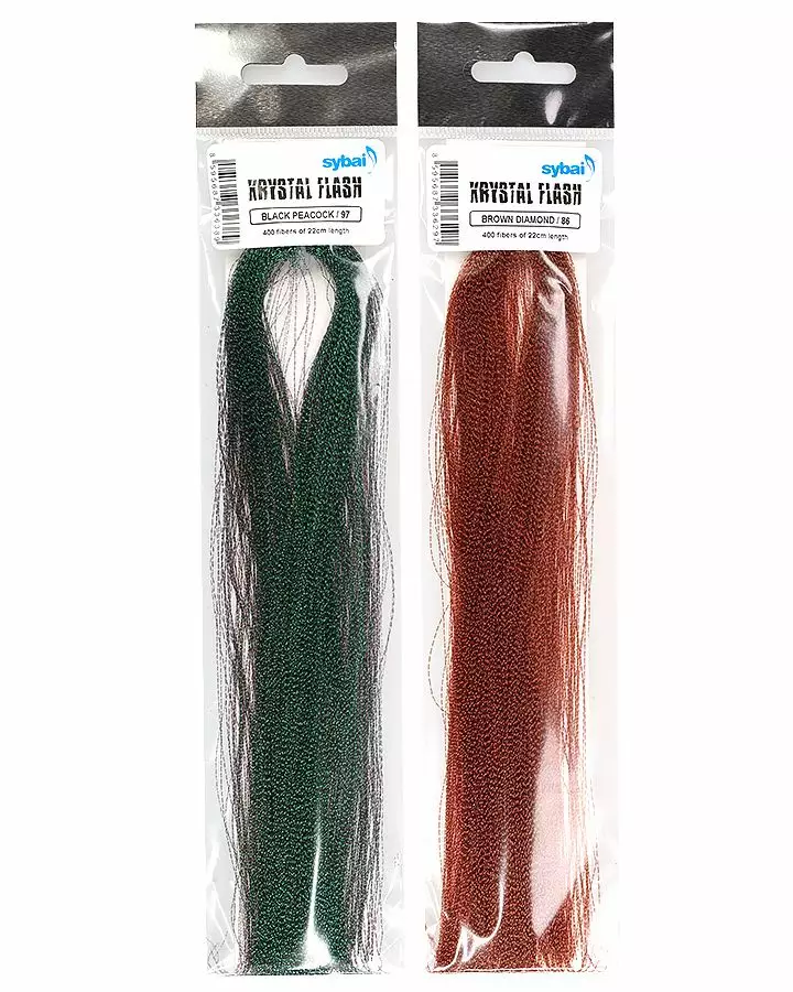 Krystal Flash wird aus gedrehten Mylarstreifen hergestellt, die das Licht wunderschön reflektieren. Das Material ist äußerst langlebig, da es sich erheblich dehnen kann, bevor es reißt, was seine Langlebigkeit in Fliegen gewährleistet. Dies macht es sowohl für Hechtfliegen als auch für kleine Streamer geeignet.