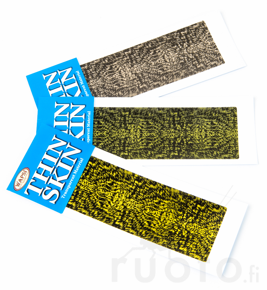 Wapsi Thin Skin ist ein vielseitiges Material für verschiedene Insektenimitationen, wie Rückenplatten und Flügelansätze. Das Material ist eine durchsichtige, dünne und elastische Folie, die leicht zu schneiden und zu verwenden ist.
