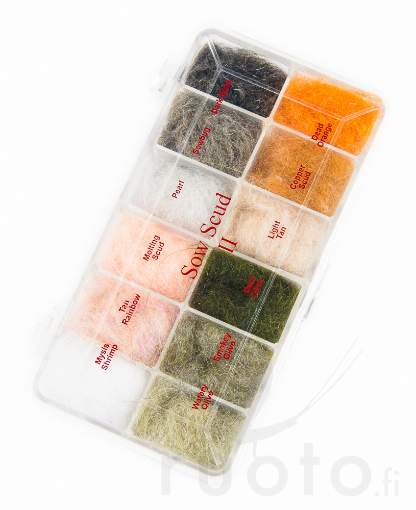 Wapsi Sow Bug And Scud Dub Dispenser II - Dubbing-Sortiment ist ein Dubbing-Sortiment, das speziell für das Fliegenbinden entwickelt wurde. Dieses Sortiment enthält 12 verschiedene Farben, die in einer praktischen Box verpackt sind. Die Farben wurden so ausgewählt, dass sie die gängigsten und beliebtesten Fangfarben abdecken, was es zu einer vielseitigen und praktischen Wahl für Fliegenbinder macht.