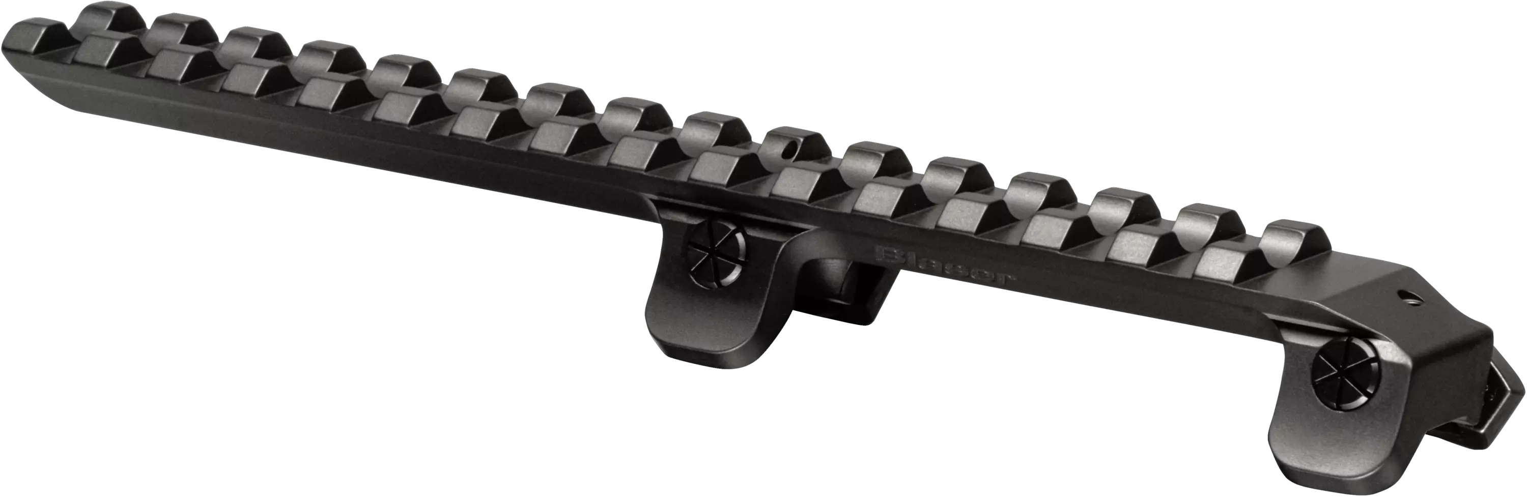 Achtung! Im Gegensatz zum Bild hat die Schiene eine feste Schraubbefestigung und nicht die abgebildeten Blaser-Schnellverschlüsse. Das Visier und die Zielfernrohr-Ringe werden separat verkauft, es handelt sich also nur um die Schiene.