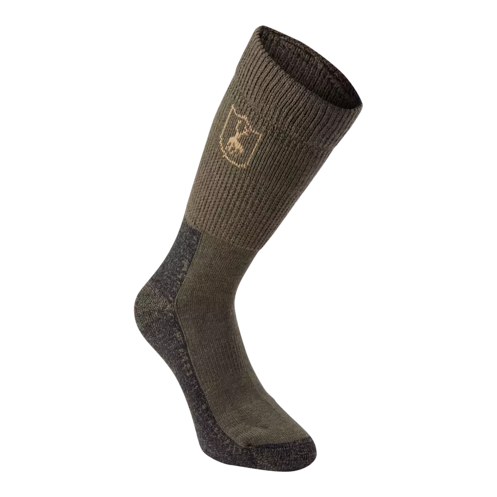 Deerhunter Wool Socks Deluxe Short Grape Leaf normale Wollmischungssocken, die speziell für die Jagd entwickelt wurden. Die Socken bestehen aus 40 % Acryl, 40 % Wolle und 20 % Polyamid, was sie warm und feuchtigkeitsableitend macht.