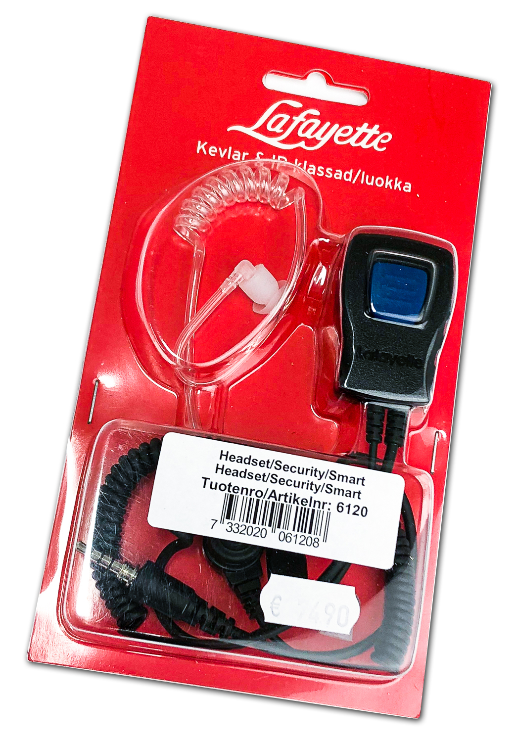Unauffälliger Ohrhörer, der unter einen Gehörschutz passt. Headset mit Sendetaste und Mikrofon. 3,5 mm, 4-poliger Stecker.