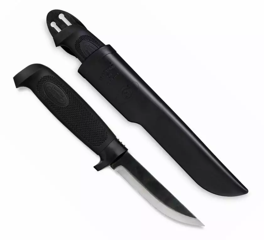 Marttiini Condor Timpuri ist das absolute Lieblingsmesser eines jeden Zimmermanns, das Praktikabilität und Langlebigkeit vereint. Der geriffelte Gummigriff mit Fingerschutz sorgt für einen sicheren Halt des Messers, selbst unter anspruchsvollen Bedingungen. Die Klinge besteht aus Kohlenstoffstahl, der sich hervorragend für Schnitzarbeiten eignet und bei Bedarf leicht auf die ursprüngliche Schärfe geschärft werden kann. Denken Sie daran, Ihr Kohlenstoffstahlmesser gut zu pflegen: Trocknen Sie die Klinge nach jedem Gebrauch sorgfältig ab und ölen Sie die Klinge regelmäßig mit salzfreiem Öl. So wird Ihr Messer Ihnen Jahr für Jahr treu dienen. Das Messer wird mit einer Kunststoffscheide geliefert.