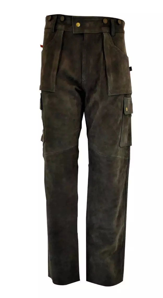 Die Hose verfügt über sorgfältig gestaltete Details, die sie praktisch und funktional für Jagd und Outdoor-Aktivitäten machen. Das verwendete Leder wurde aufgrund seiner Haltbarkeit und Qualität ausgewählt.