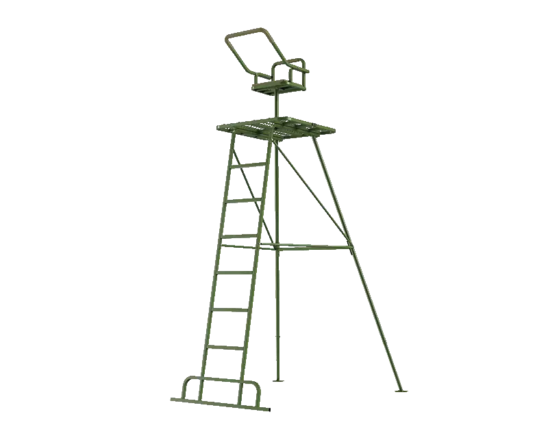 Der Ansitzstuhl ist flexibel und eigenständig konzipiert, sodass er genau dort platziert werden kann, wo er während der Jagdsaison benötigt wird und wo sich das Wild bewegt. Der Sitz des Stuhls kann sich 360 Grad drehen, was ein breites Sichtfeld ermöglicht und das Schießen in verschiedene Richtungen erleichtert.