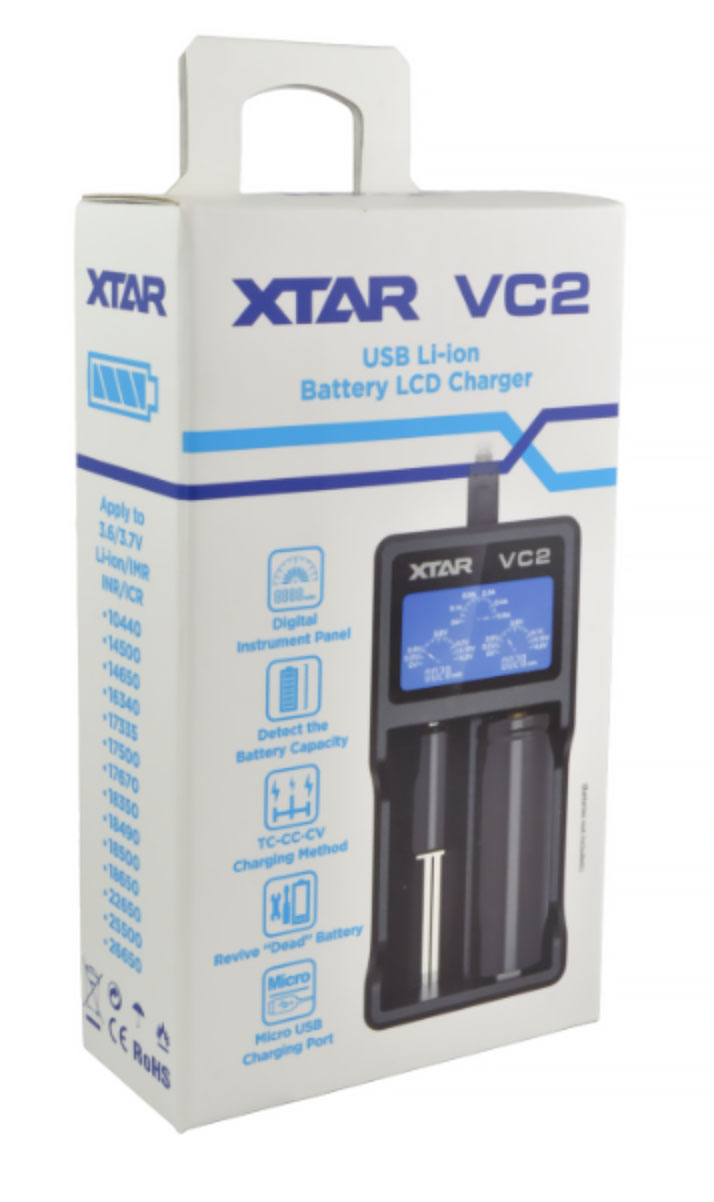 Xtar VC2 - ist ein vollautomatisches Li-Ion Ladegerät, dessen Display die in die Batterie geladene Kapazität (mAH), den Ladezustand und die Spannung anzeigt. Das Ladegerät passt den Ladestrom... Mehr lesen