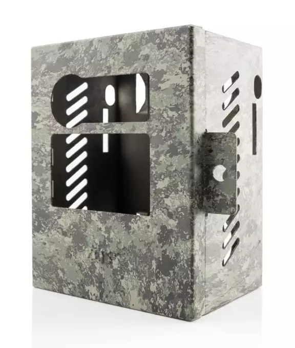 Zeiss Secacam 3 Metallgehäuse Das Metallgehäuse für die Zeiss Secacam 3 Wildkamera bietet zusätzlichen Schutz vor Diebstahl und Vandalismus. Das Gehäuse ist aus Stahl gefertigt und verfügt über präzise geschnittene Öffnungen, die die Funktionen der Kamera nicht beeinträchtigen.
