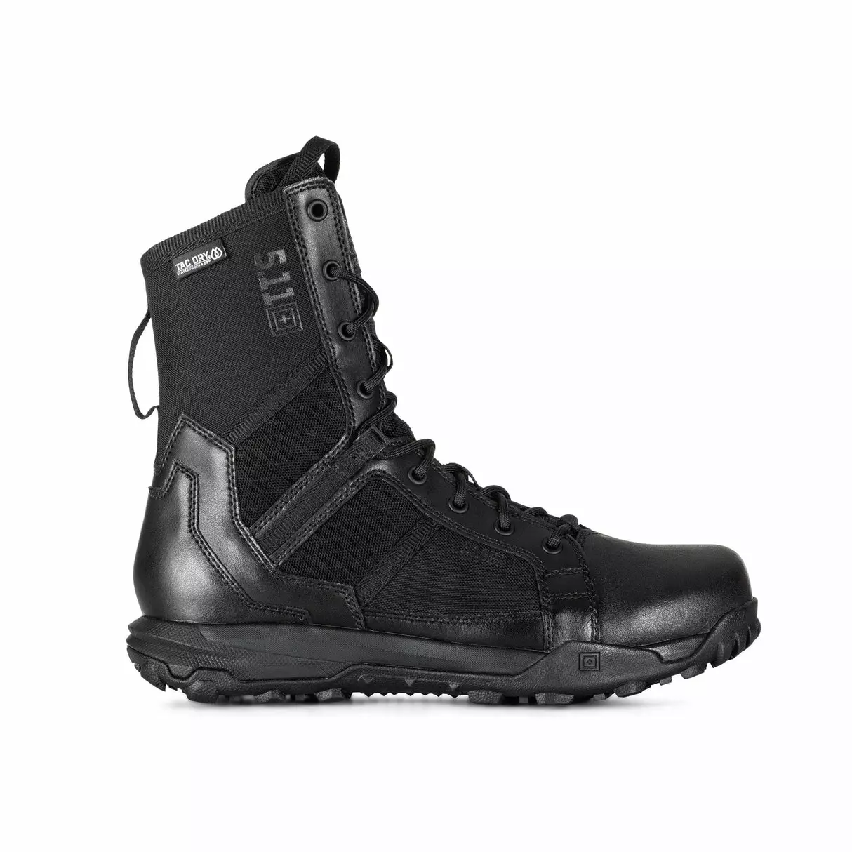 5.11 A/T 8 Side Zip Waterproof Black ist ein taktischer, wasserdichter Schuh, der entwickelt wurde, um Komfort und Unterstützung für lange Tage und das Tragen schwerer Ausrüstung zu bieten.