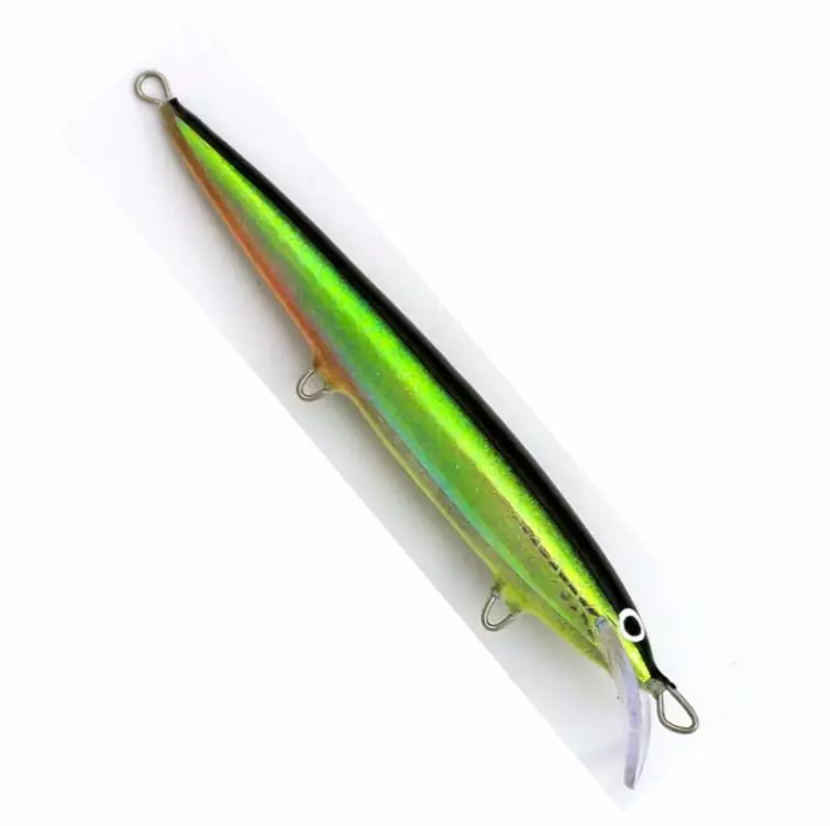 HK Varma Taimen Kouru ist ein handgefertigter Köder aus Balsaholz mit einer Rinnenplatte, die einen verlockenden und suchenden Schwimmstil erzeugt. Diese unregelmäßige Schwimmbewegung macht ihn besonders effektiv sowohl für Forellen als auch für Zander. Der Köder funktioniert gut sowohl beim Ruder- als auch beim Motorenschleppangeln, und sein Geschwindigkeitsbereich ist breit, 2,5 - 6 km/h. Die Tauchtiefe des Wobblers beträgt etwa 1,5 Meter.