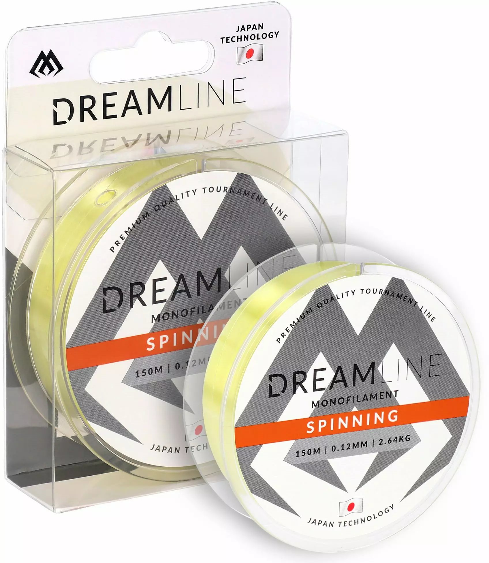 Mikado Dreamline Yellow gelbe Monofil-Angelschnur, geliefert auf einer 150-Meter-Spule. Die Schnur ist weich und flexibel und eignet sich besonders für das Eisangeln sowie das Flussangeln.