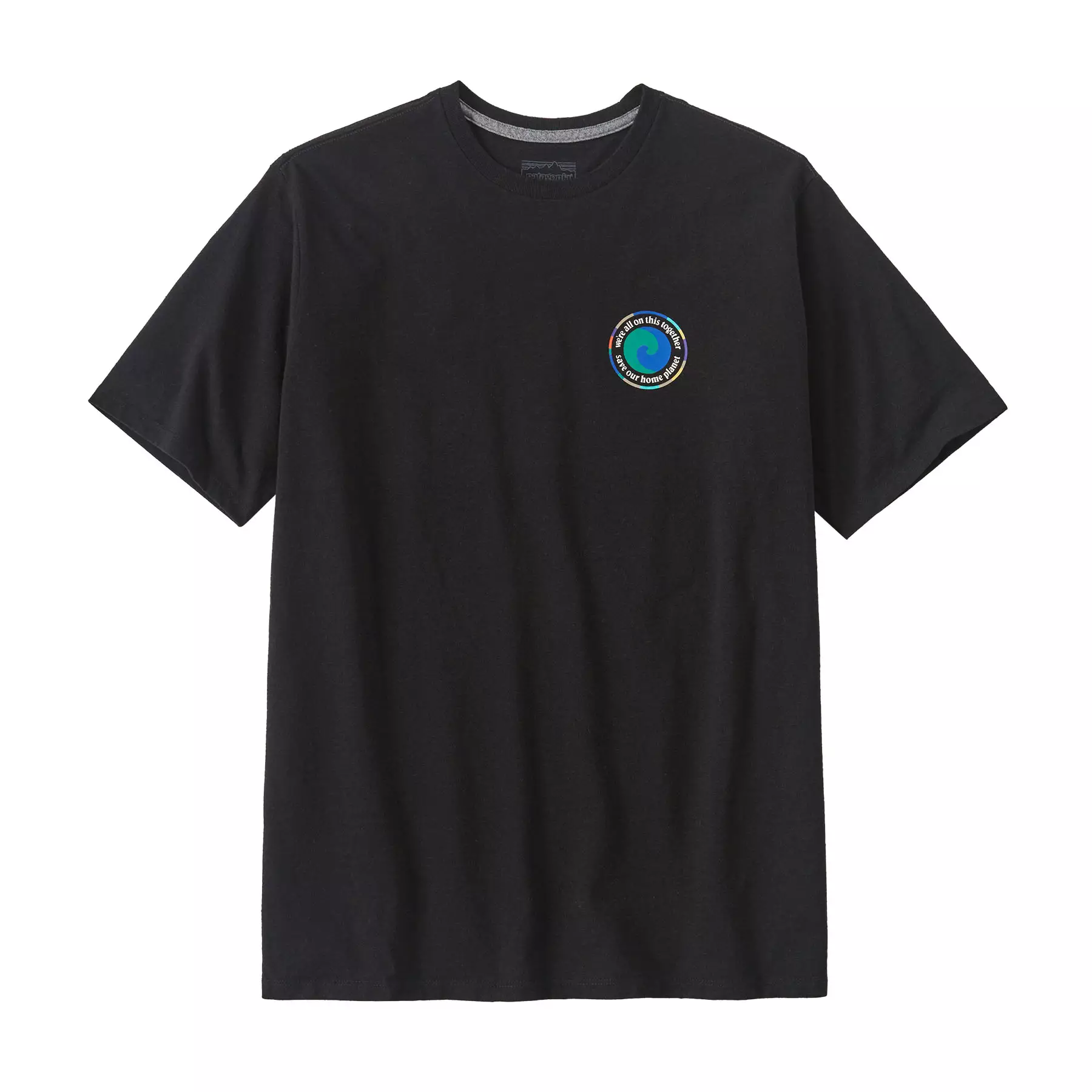 Patagonia Ms Unity Fitz RespT INBK – Herren-T-Shirt, das zu 100 % aus recyceltem Material hergestellt ist. Dieses T-Shirt wurde mit Blick auf Komfort und Haltbarkeit entworfen und zeigt einen stilisierten Globus mit den Botschaften "we're all on this together" und "save our home planet".