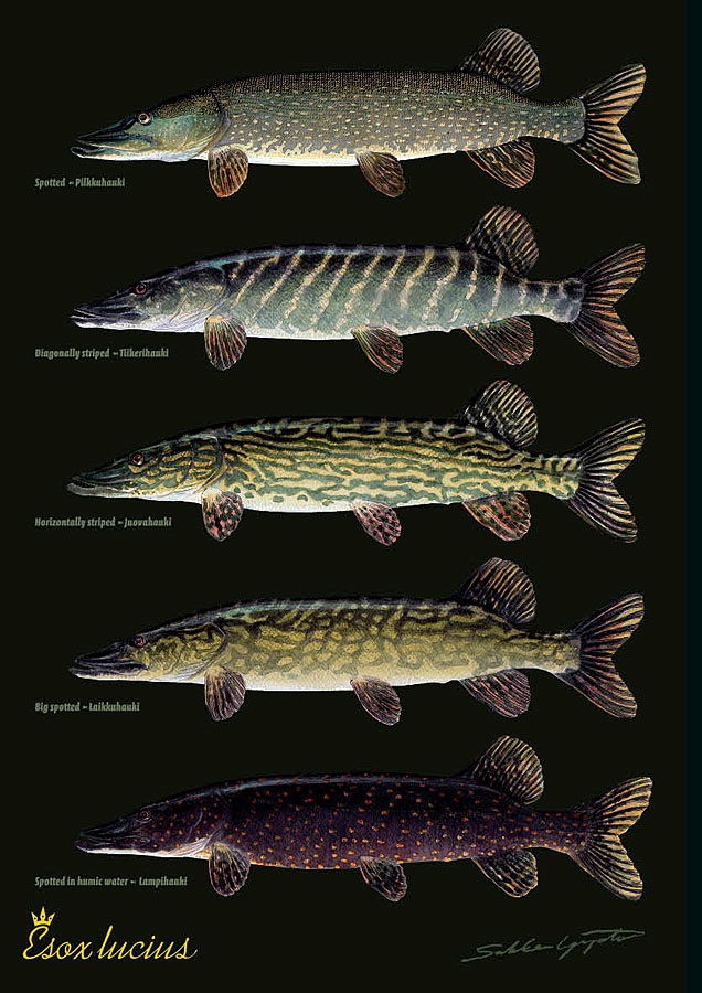 Sakke Yrjölä Hechtvariationen -Karte/A4-Fischtabelle ist eine ausgezeichnete Wahl für alle Angelbegeisterten. Diese schöne und informative Karte präsentiert die verschiedenen Variationen des Hechts in kompakter Form.