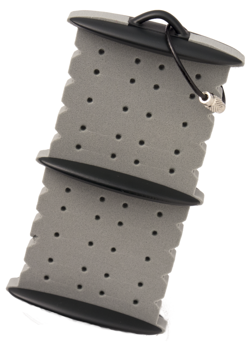 Smith Creek Rig Keeper™ ist ein Transport- und Aufbewahrungssystem für Ihre fertigen Rigs. Das Produkt hält sowohl einfache Vorfächer als auch mit Fliegen beladene Rigs fest. Der Rig Keeper verfügt über einen Schlitzschaum zur Befestigung der Fliegen sowie über Rillen an den Rändern, in die Sie die Vorfächer fest einwickeln. Sie können Ihre Rigs am Abend vorbereiten, am Rig Keeper befestigen und sich tagsüber auf das Wesentliche konzentrieren. Der Rig Keeper kann an der Weste baumeln oder bequem in der Tasche getragen werden. Eine einfache, unkomplizierte und schnelle Möglichkeit, fertige Vorfächer für den Angeltag mitzunehmen.