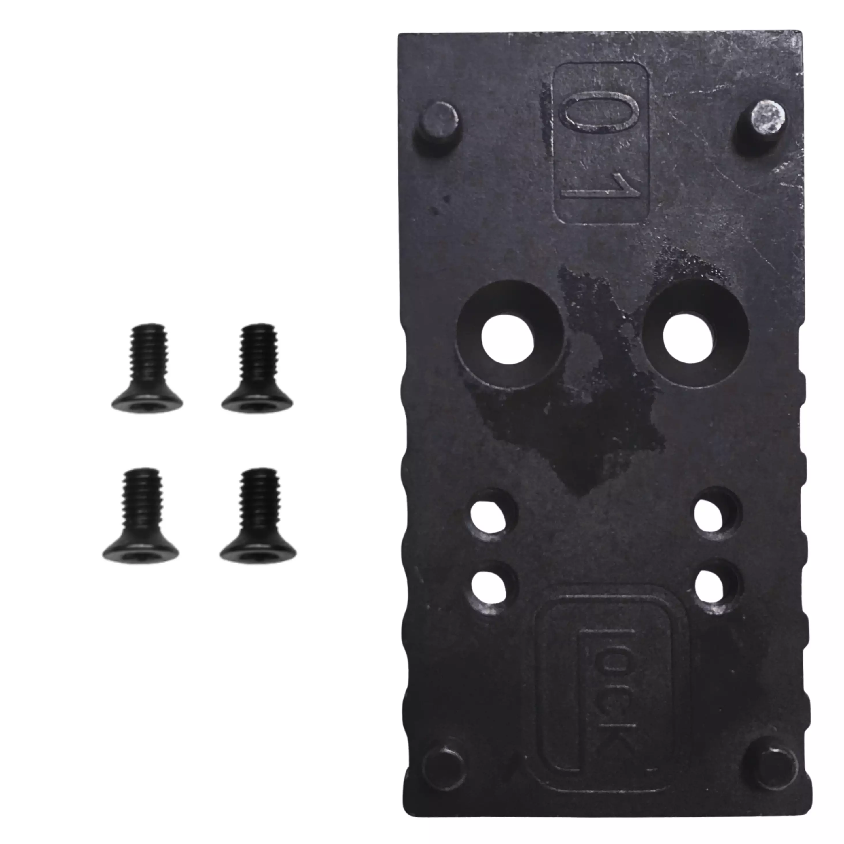 Glock MOS Adapterplatte ist eine Adapterplatte, die die Montage eines Rotpunktvisiers auf einer Glock MOS-Pistole ermöglicht. Es sind vier verschiedene Platten erhältlich, die für unterschiedliche Visiermodelle geeignet sind.
