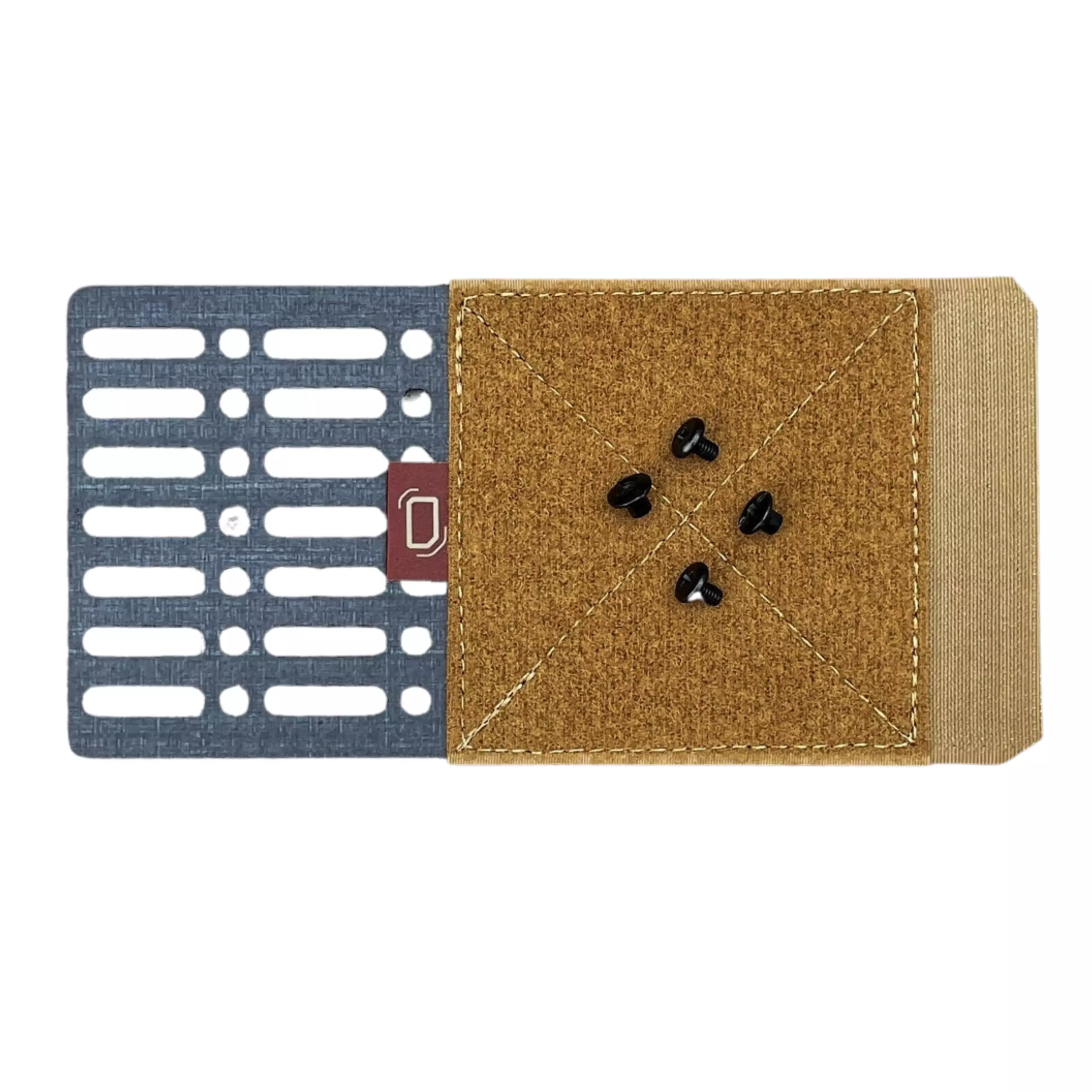 Hergestellt aus 0,9 mm CURV™ Tactical-Material, das leicht und langlebig ist. Die Größe beträgt 100 × 200 mm und es enthält zwei Schrauben und zwei Befestigungspunkte für die Befestigung eines Messerholsters.