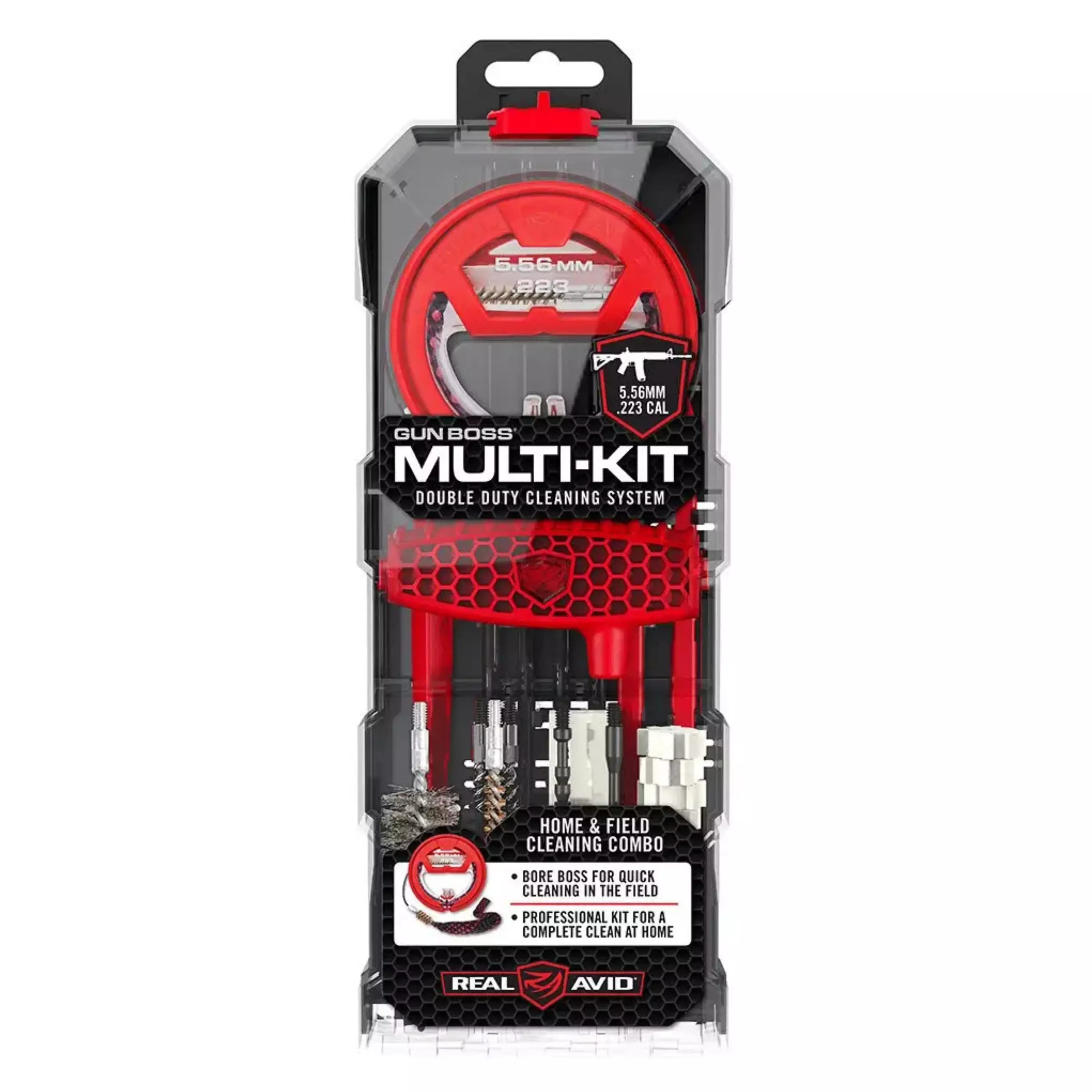 Real Avid Gun Boss Multi Kit .223/5.56 - Kaliberspezifisches Reinigungsset für .223 Rem / 5.56 mm Waffen, entwickelt für Wartung zu Hause und im Feld; ein spezialisiertes Set für einen Kaliber kombiniert Bore Boss Schnellreinigung und ein erweitertes Bohrungs-, Verschluss- und Patronenlager-Wartungsset in einem Paket.