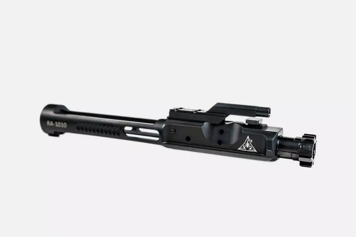 Die Materialauswahl und Oberflächenbehandlungen sind für den anspruchsvollen Einsatz ausgelegt: Der Bolt besteht aus 9310-Stahl und ist MPI-geprüft, der Carrier besteht aus 8620-Werkzeugstahl, wärmebehandelt und einsatzgehärtet. Der Gas Key besteht aus Werkzeugstahl, befestigt mit gehärteten Schrauben der Klasse 8 und korrekt gestakt. Der Cam Pin besteht aus 4140-Stahl und der Extractor aus Werkzeugstahl, shot peened für erhöhte Haltbarkeit.